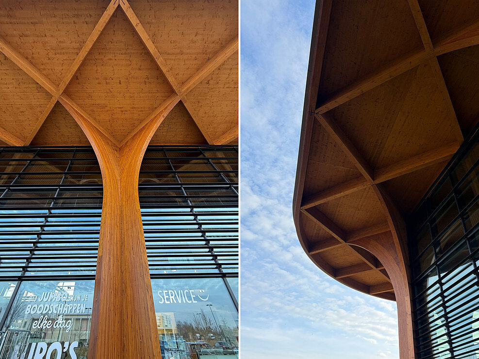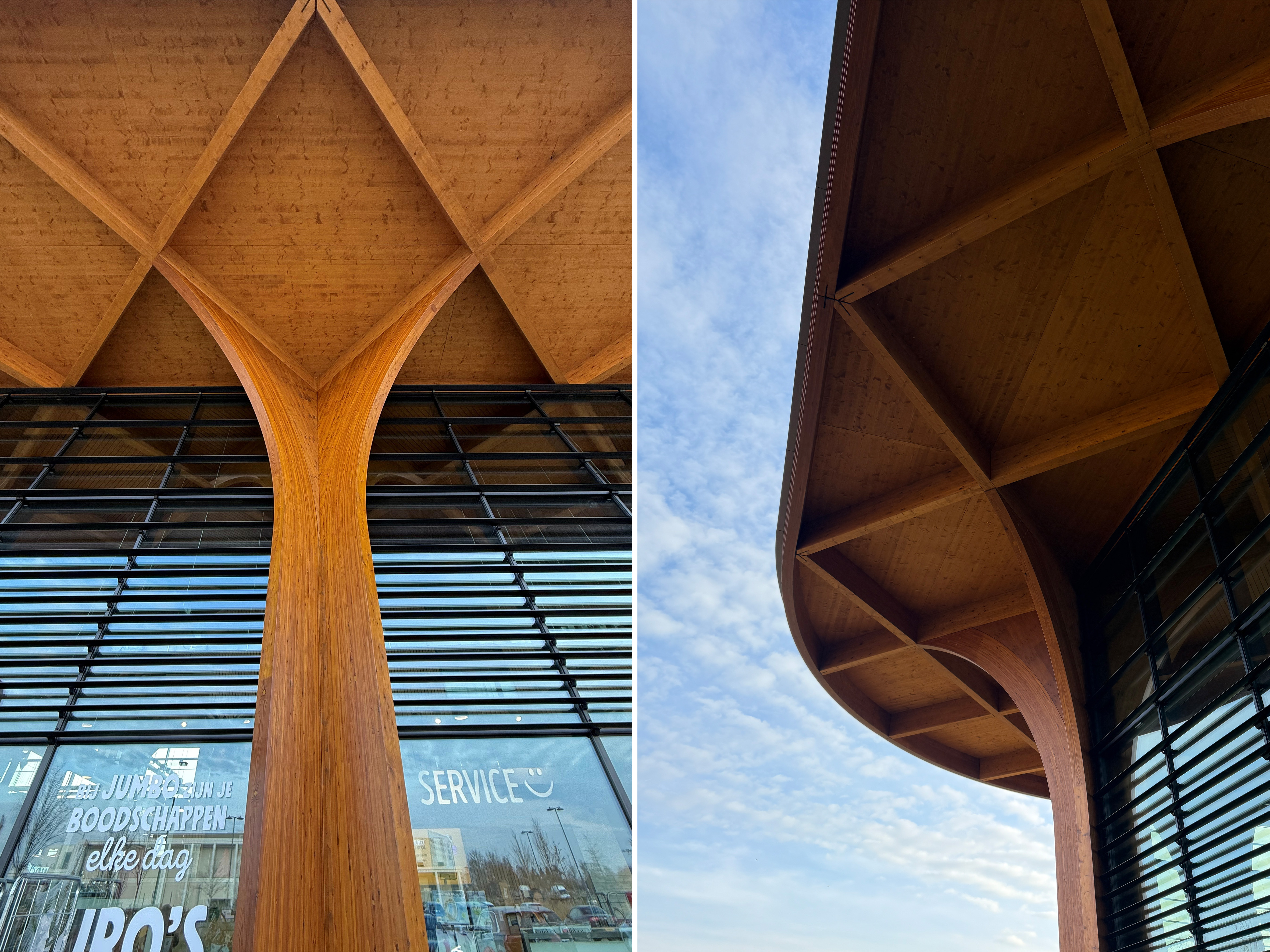 De terugreis in de minibus voerde ons langs SuperHub Meerstad, een supermarkt in Groningen met een grote houten draagconstructie. We sloten de excursie af met een aantal andere inspirerende projecten en een lekkere lunch in de binnenstad van Groningen.