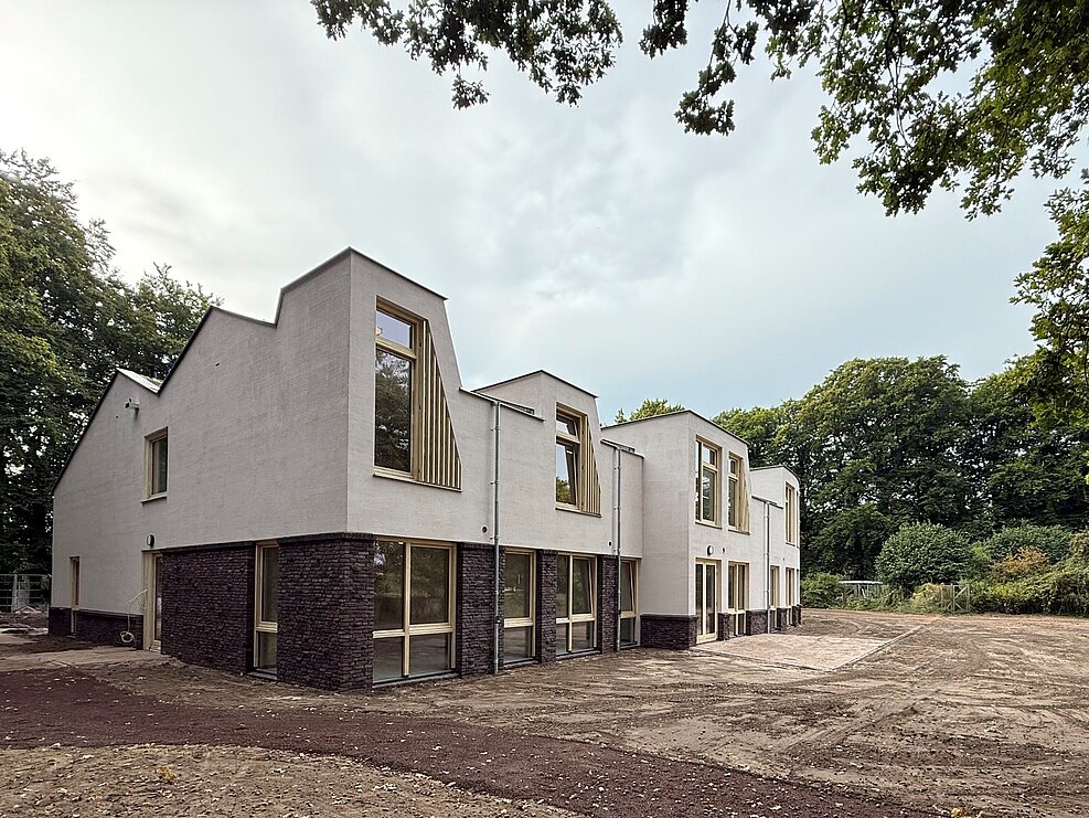 De nieuwbouw van het woonzorggebouw voor 32 bewoners is de grootste opgave binnen het gehele project. Het gebouw bestaat uit een programma dat is vertaald in een compact tweelaagse massa met een centrale gang waarlangs de bewonerskamers aan twee zijden zijn geclusterd. Om de hoofdmassa meer dynamiek en menselijke schaal te geven, is het hart van het gebouw middels een afgeronde knik gevormd naar zijn context. Het gebouw opent zich hiermee aan de entreezijde en de afgeronde zijde reageert in de richting van het aangrenzende landschap. De profilering van de dakkap is in hoogte en verhouding afgestemd op die van de bestaande boerderij. Vanwege de breedte van het gebouw is het voorzien van een dubbel geknikte kap. Hiermee vormt het nieuwe gebouw een toevoeging die zowel reageert op de historische bebouwing als op de nieuwe organische bebouwing op het terrein van de Triodosbank.