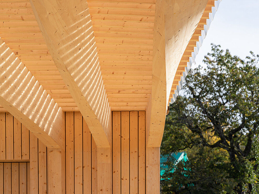 Het preparatenpaviljoen in Dornach heeft bij de ICONIC AWARDS 2025 maar liefst twee prijzen in de wacht gesleept! Het project is als winnaar uit de bus gekomen in de categorie architectuur, bij zowel Event & Exhibition als Circular Design. Het paviljoen bevindt zich op het terrein van het Goetheanum, het centrum voor antroposofische kennis en biodynamische landbouw. De nieuwbouw creëert een overdekte buitenruimte waar de tuinders biodynamische monsters bereiden en presentaties geven. Het meest opvallende kenmerk van het paviljoen is het grote, organische dak, ontworpen met gedraaide houten spanten die doen denken aan ontluikende bloemen. Kijkend vanonder de luifel verwijzen de houten spanten naar het Heizhaus (ketelhuis) op het terrein, oorspronkelijk ontworpen door Rudolf Steiner.