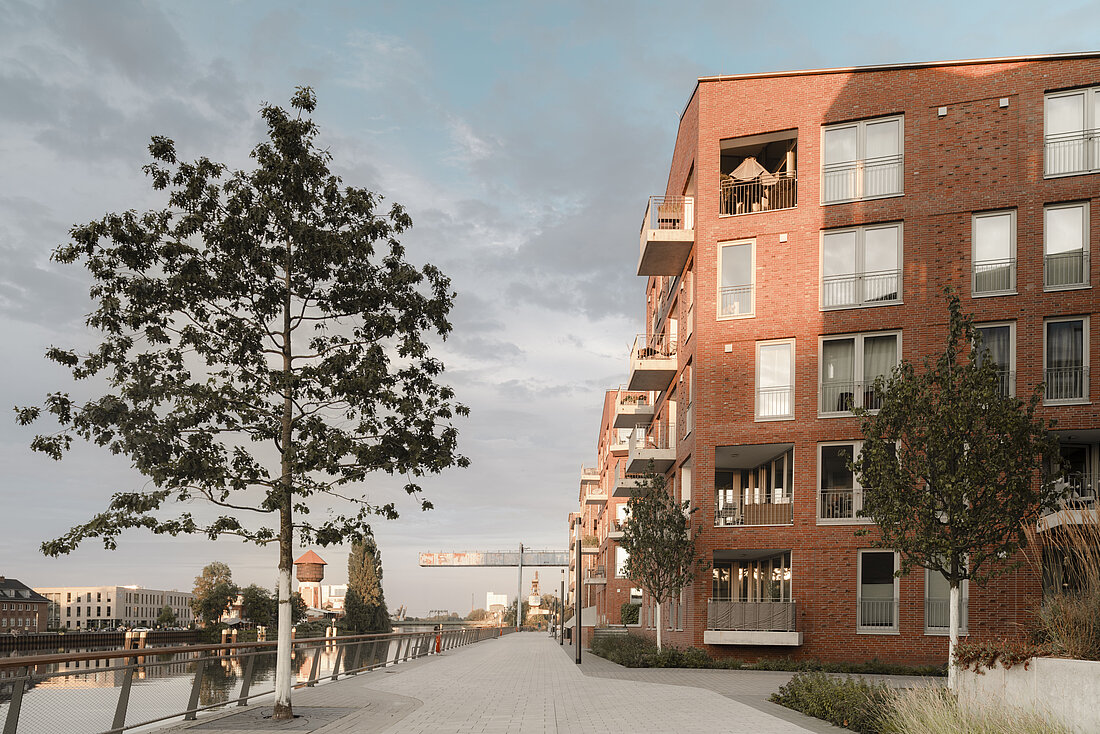 De oude industriële zuidzijde van de haven in Oldenburg is herontwikkeld tot een levendige woonwijk. De nieuwe stedenbouwkundige opzet van de woonblokken biedt een hoge mate van geluidswering tegen de nog bestaande industriële bedrijven aan de ene zijde en opent zich tegelijkertijd met veel uitzicht naar het water. Door het toevoegen van aantrekkelijke promenades en openbare ruimtes aan het water is er een levendige nieuwe woonwijk ontstaan.