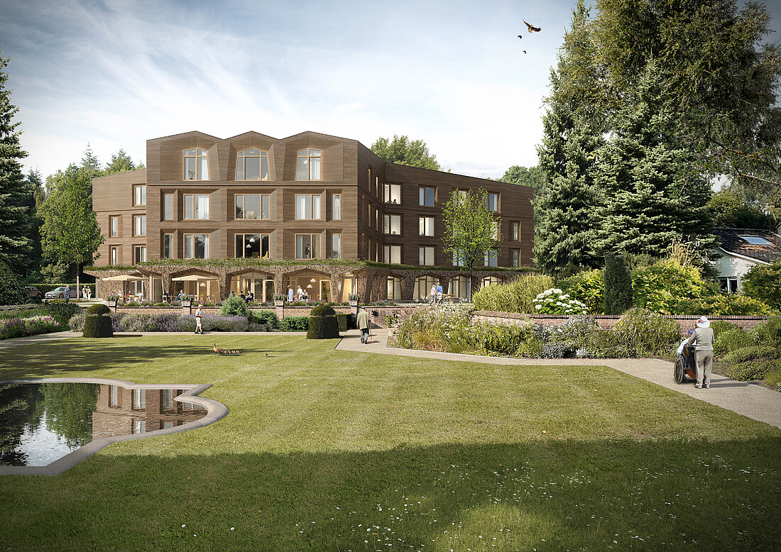De nieuwbouw voor Huize Valckenbosch bevindt zich op een ruime kavel grenzend aan een karakteristieke dieptetuin midden in een woonwijk in Zeist. De relatie van de nieuwbouw met de dieptetuin is zorgvuldig opgepakt. Het nieuwe volume reageert op de symmetrie van de dieptetuin met een duidelijke kop en een verfijnde en eigentijdse geveldetaillering. Het nieuwe volume neemt afstand van de bestaande villa’s en creëert een ruim voorplein tussen de bestaande kerk en de entree. Ten noorden van de nieuwbouw ligt de bestaande Rafaëlkerk. Samen met deze kerk deelt Huize Valckenbosch een rijk verleden ten dienste van de Christengemeenschap. De antroposofische zorg en de christengemeenschap vormen samen de unieke identiteit van het huis. In de nieuwbouw komt ruimte voor de sociale, kunstzinnige en geestelijke aspecten van de gemeenschap. Er wordt een kloppend en dynamisch hart gecreëerd met organische en stromende ruimtes. Het huis krijgt verschillende woonkwaliteiten, waardoor niet iedere verdieping een kopie is van de vorige. Er komt open gemeenschapsruimte in het gebouw om nieuwe dingen uit zichzelf te laten ontstaan.